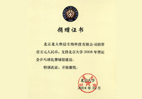 2004年10月,公司捐資壹萬元人民幣,支持北京大學(xué)2008年奧運(yùn)會乒乓球比賽場館建設(shè)。